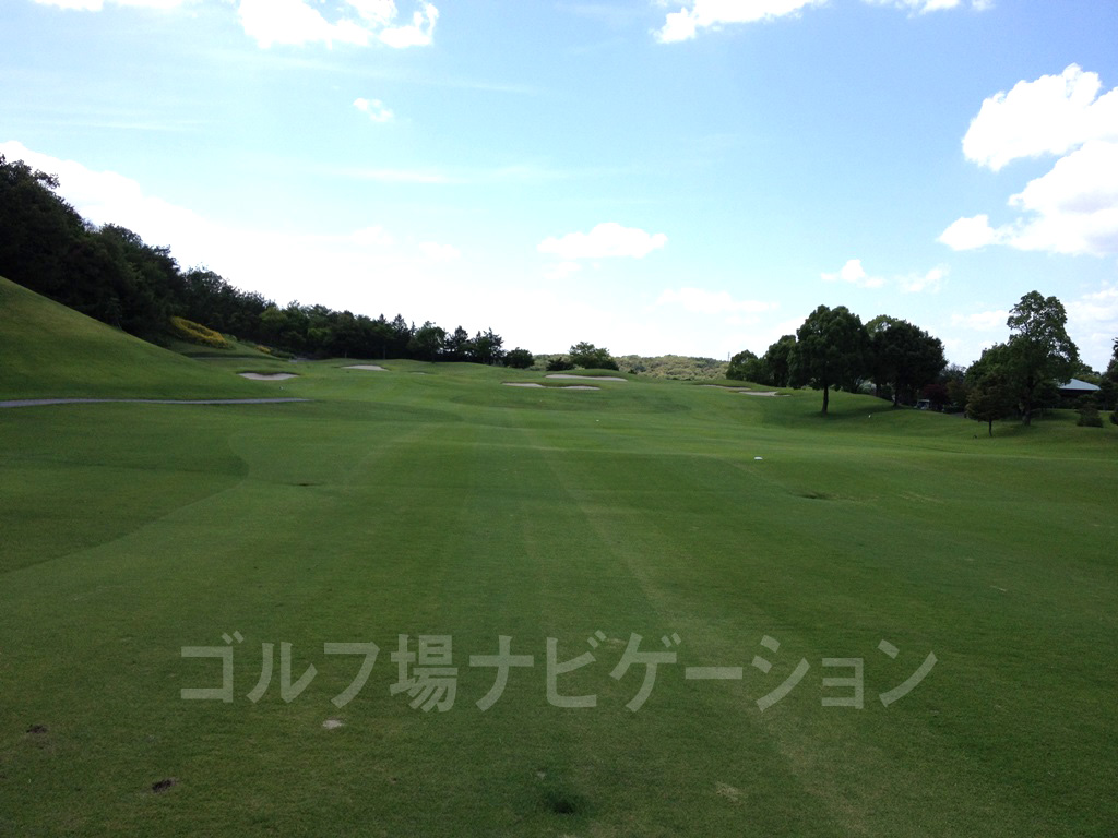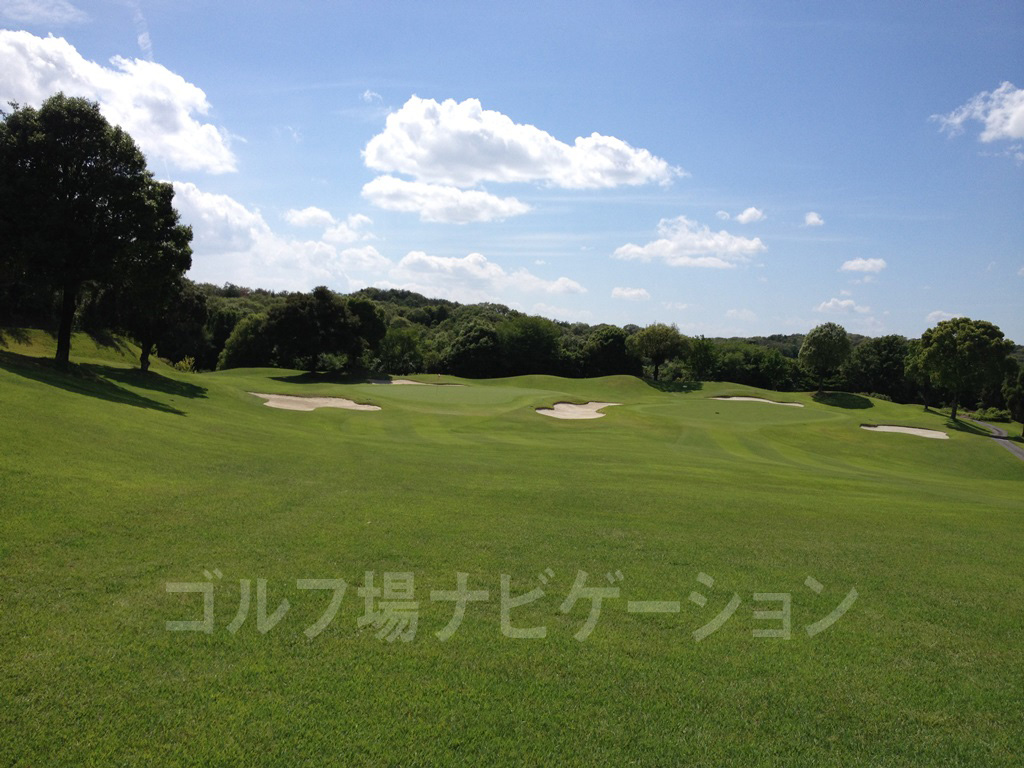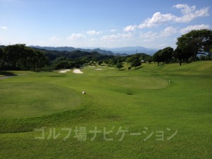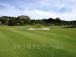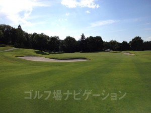 やや左ドッグレッグのロングホール。ティーショットは谷を越えてバンカーのやや右目狙い。グリーン奥にはガードバンカーが複数あるので手前から攻めたい。