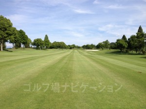 やや距離の長いまっすぐのミドルホール。ほぼフラットなので距離は測り易い。右の林を越すと池があるのでスライスは厳禁。