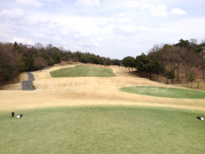 ほぼまっすぐのロングホール。ティーショットはやや左目狙い。残り200ヤードくらいから打ち上げ。