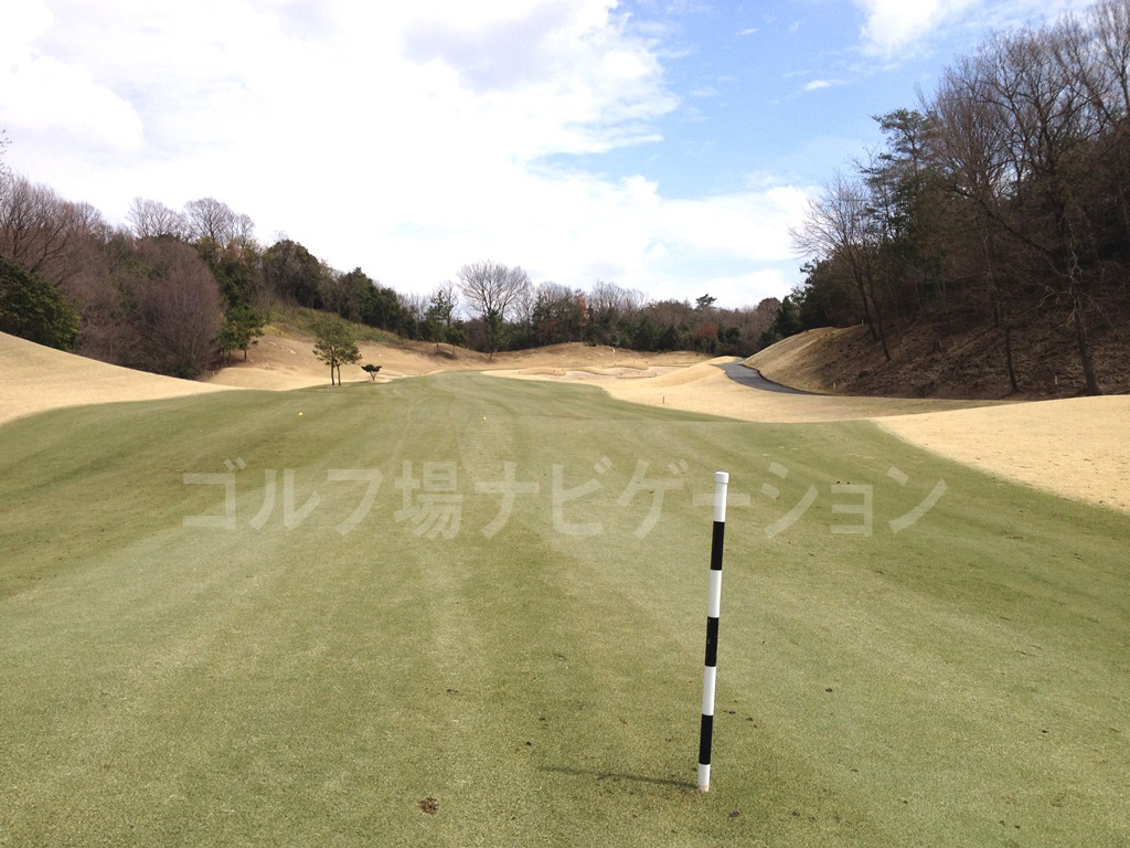フラットなショートホール。グリーン中央やや右が尾根になっている。
