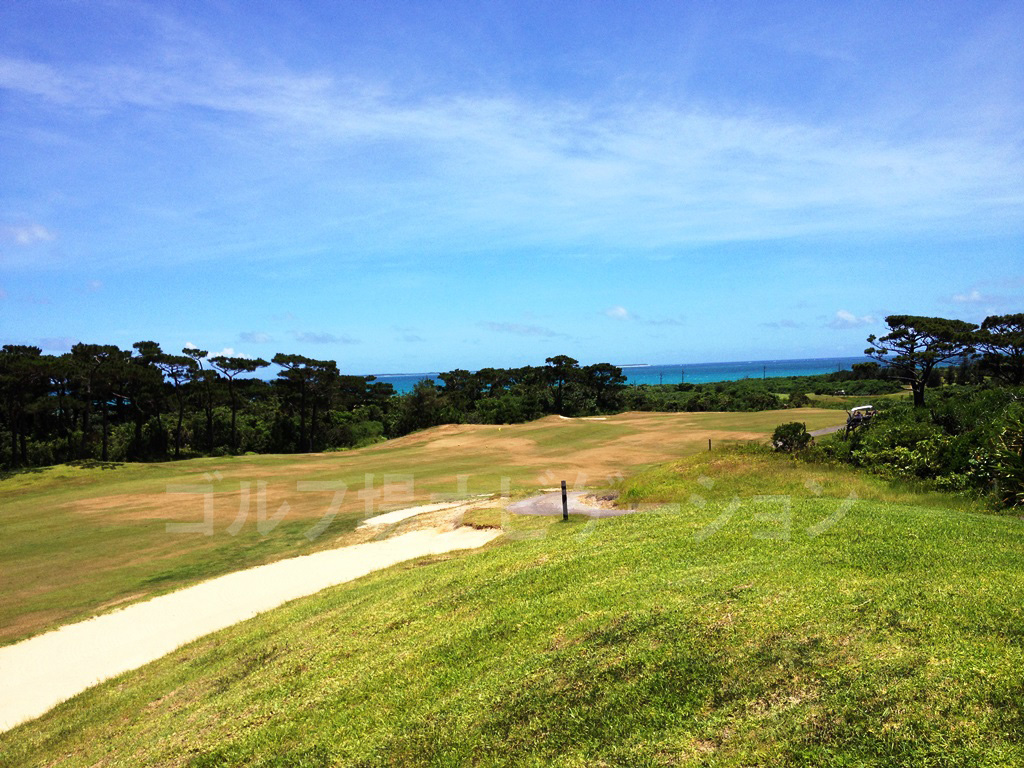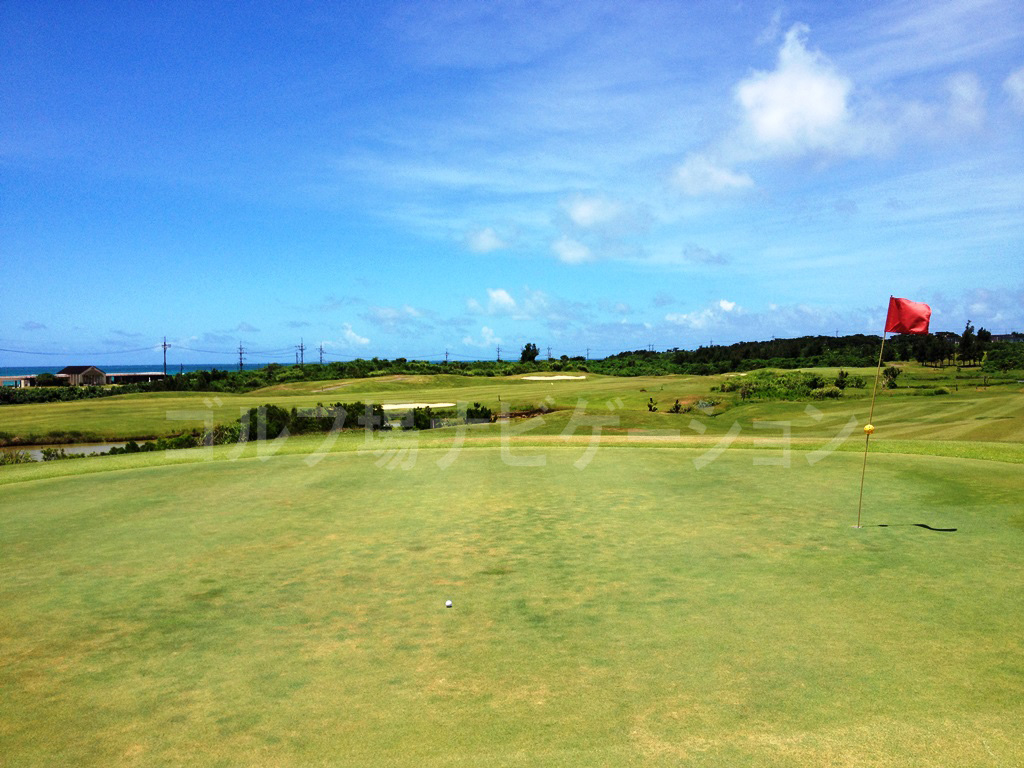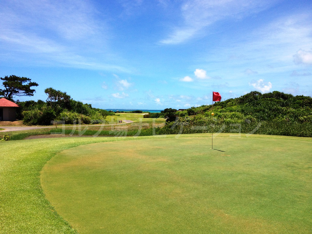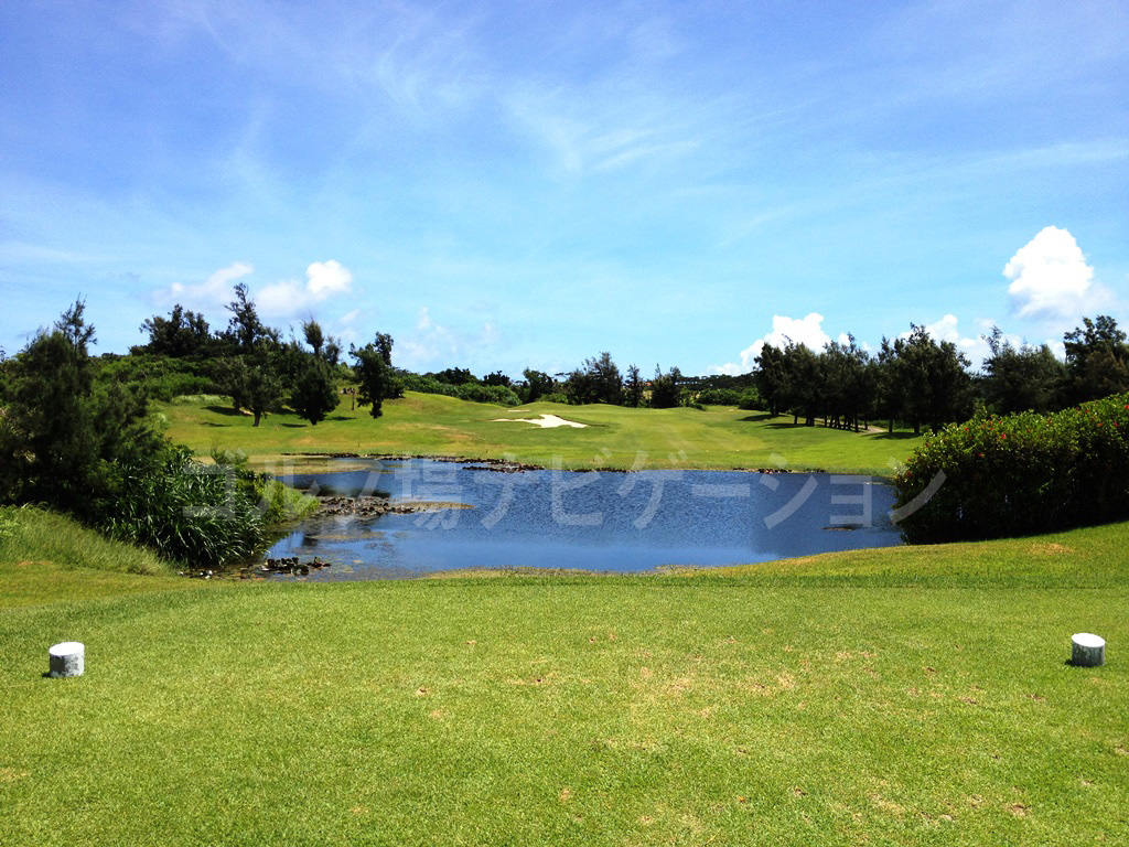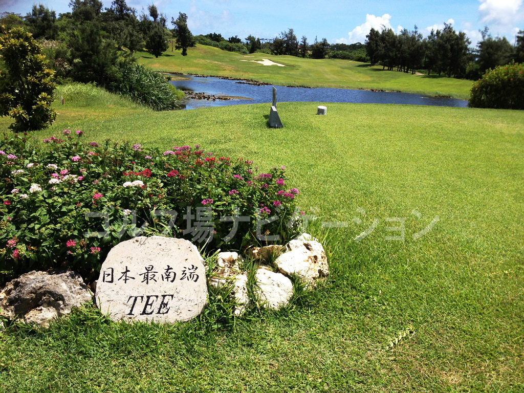 池越えでやや距離のあるショートホール。※ティーグランドは日本最南端。