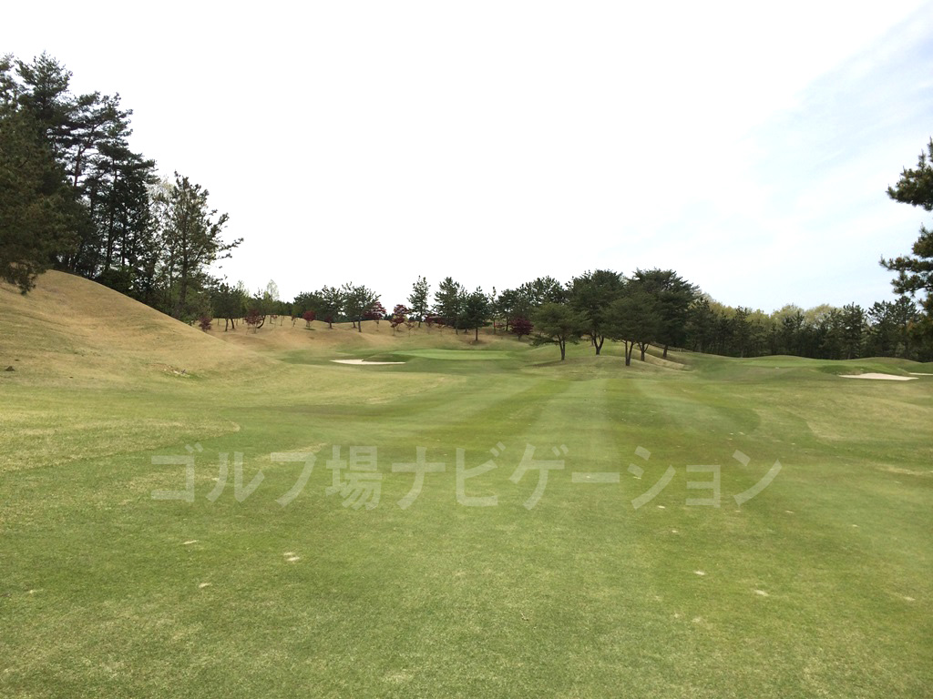 ストレートのミドルホール。セカンドはやや高低差のある打ち上げでグリーン面が見えないのでピン位置の確認と距離感に注意。
