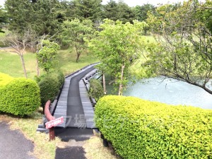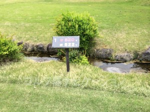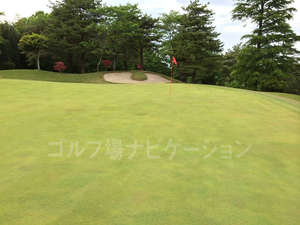 池越えのショートホール。ティグランドとグリーンの高低差はほぼ無し。