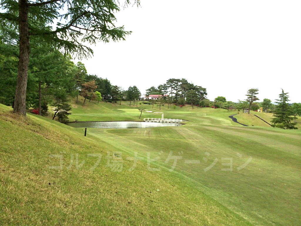 小さな池越え、やや打ち上げのロングホール。気持ち右ドッグレッグしているが大きく曲がってないのでティショットはセンター狙いで。